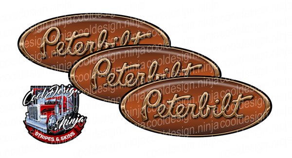 Style and protect your factory hood emblems with a set of custom Peterbilt Emblem Skins. Printed on 3M Scotchcal vinyl then laminated for a 7+ year road life.