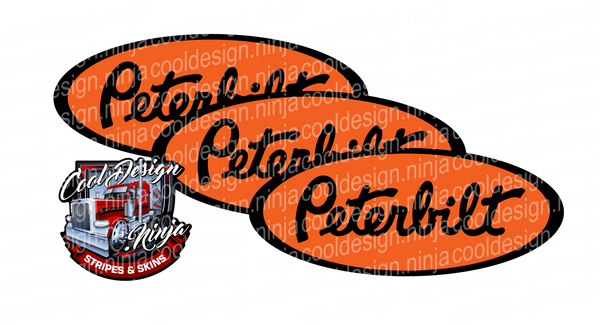 Style and protect your factory hood emblems with a set of custom Peterbilt Emblem Skins. Printed on 3M Scotchcal vinyl then laminated for a 7+ year road life.